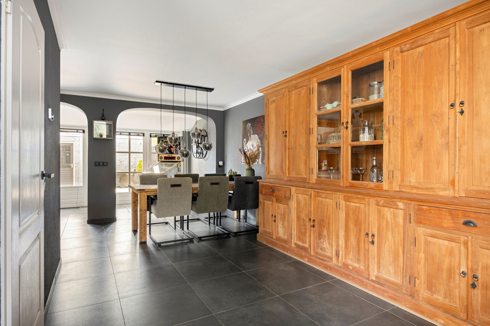 Vanuit de keuken heb je toegang tot de tuin via een loopdeur en vanuit het eetgedeelte via openslaande tuindeuren.