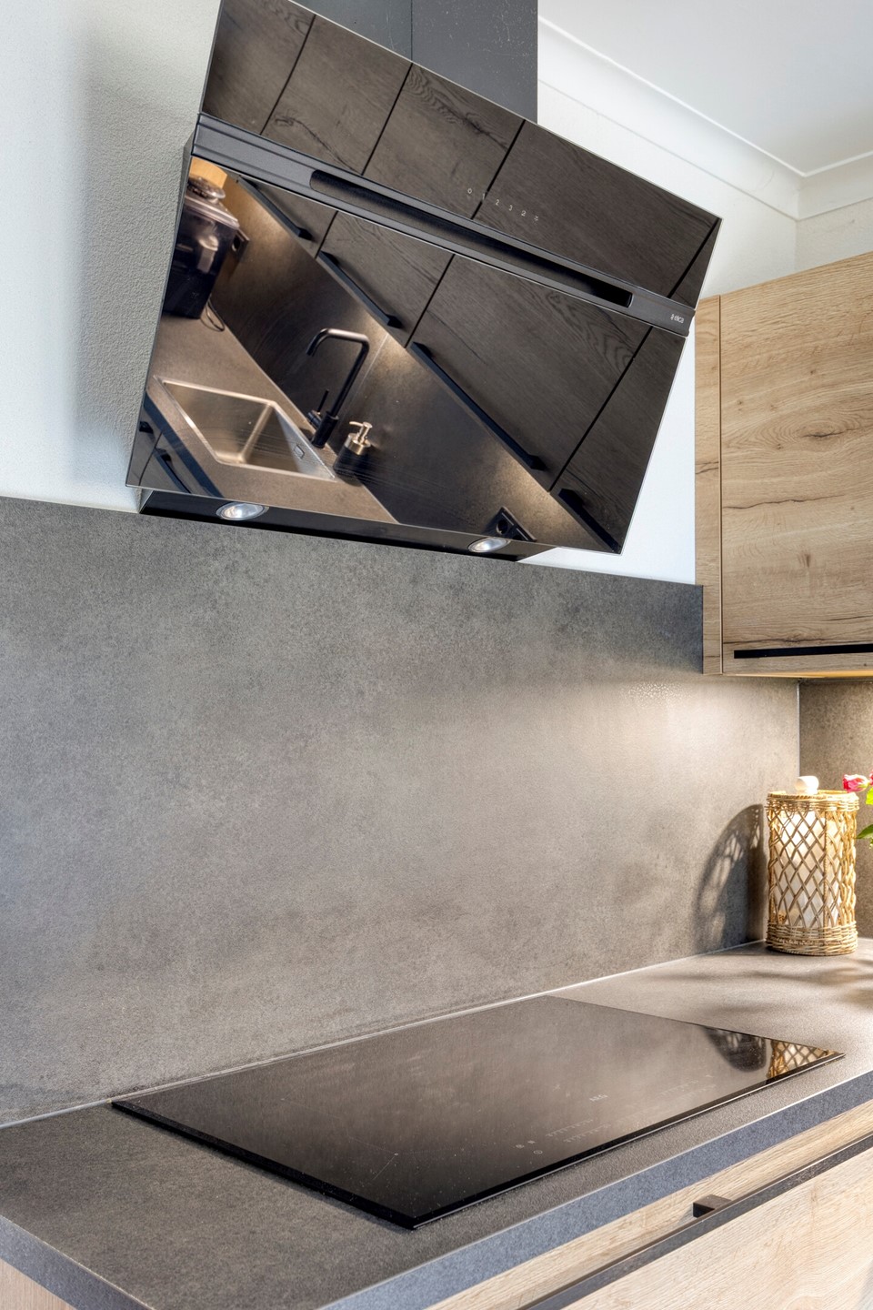De moderne nieuwe keuken (2022) is ruim van opzet en voorzien van diverse inbouwapparatuur zoals een inductiekookplaat, moderne afzuigkap, koelkast, vaatwasser, combimagnetron en voldoende opbergruimte door o.a. de aanwezigheid van een apothekerskast. En voor de gezellige avonden ligt de wijn al koel in de wijnklimaatkast.