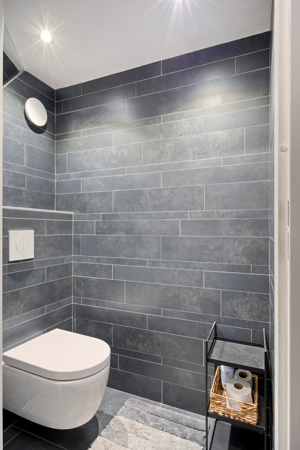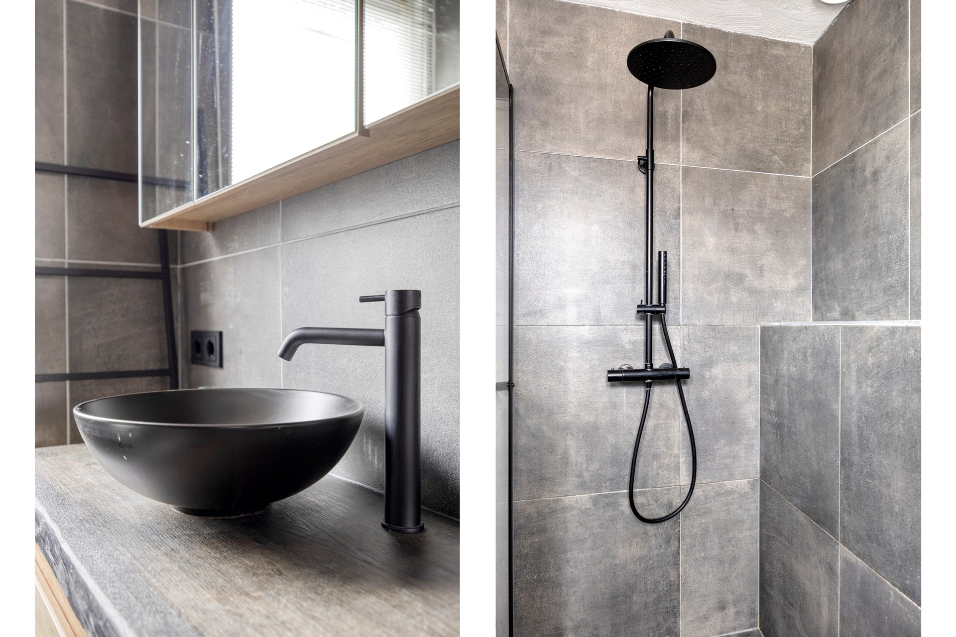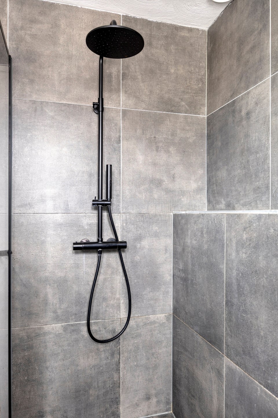 De badkamer is in 2022 vernieuwd en straalt luxe en comfort uit. Voorzien van een inloopdouche met stort- en handdouche, een wastafel in meubel, designradiator en een toilet.