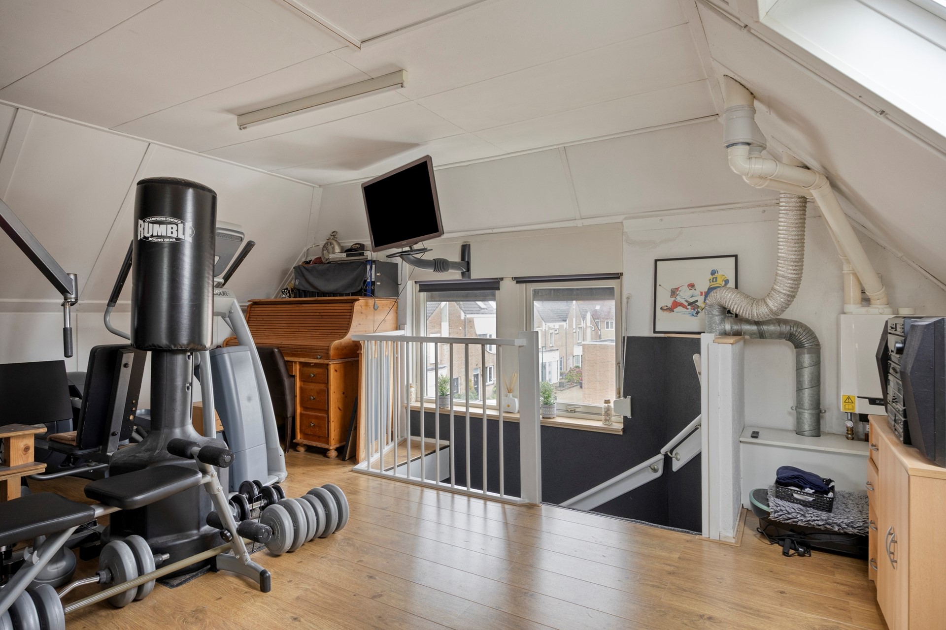 Aangekomen op de tweede verdieping tref je de zolderruimte aan. Deze kan dienen als vierde slaapkamer maar ook als sportruimte, kantoorruimte of gewoon bergruimte. Er is hier voldoende lichtinval door de ramen aan de zijkant van de zolder en het Velux dakraam. Aan beiden zijden zijn er bergschotten en als je nog niet genoeg bergruimte hebt is er ook nog een vlizozolder aanwezig. De vloer is afgewerkt met laminaat.