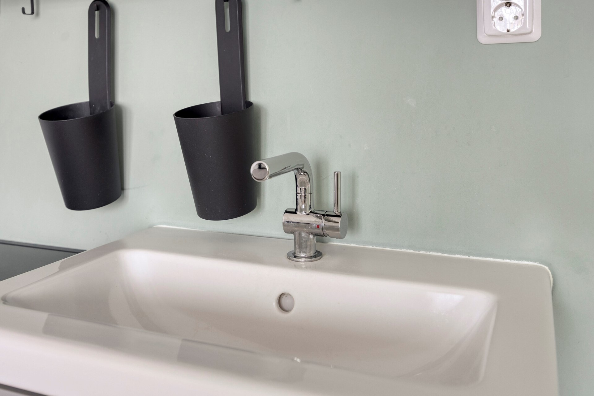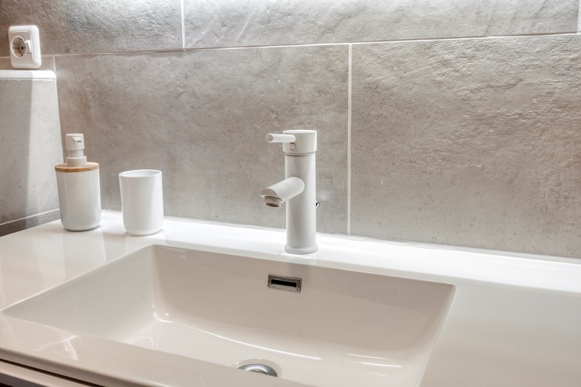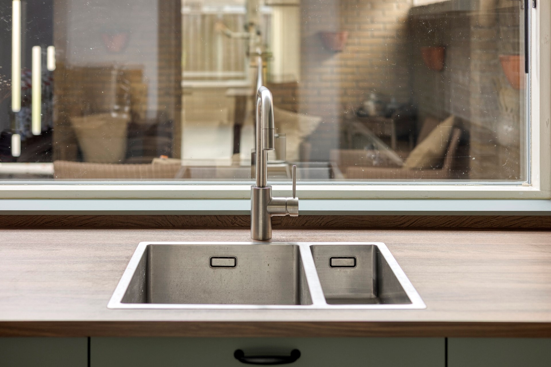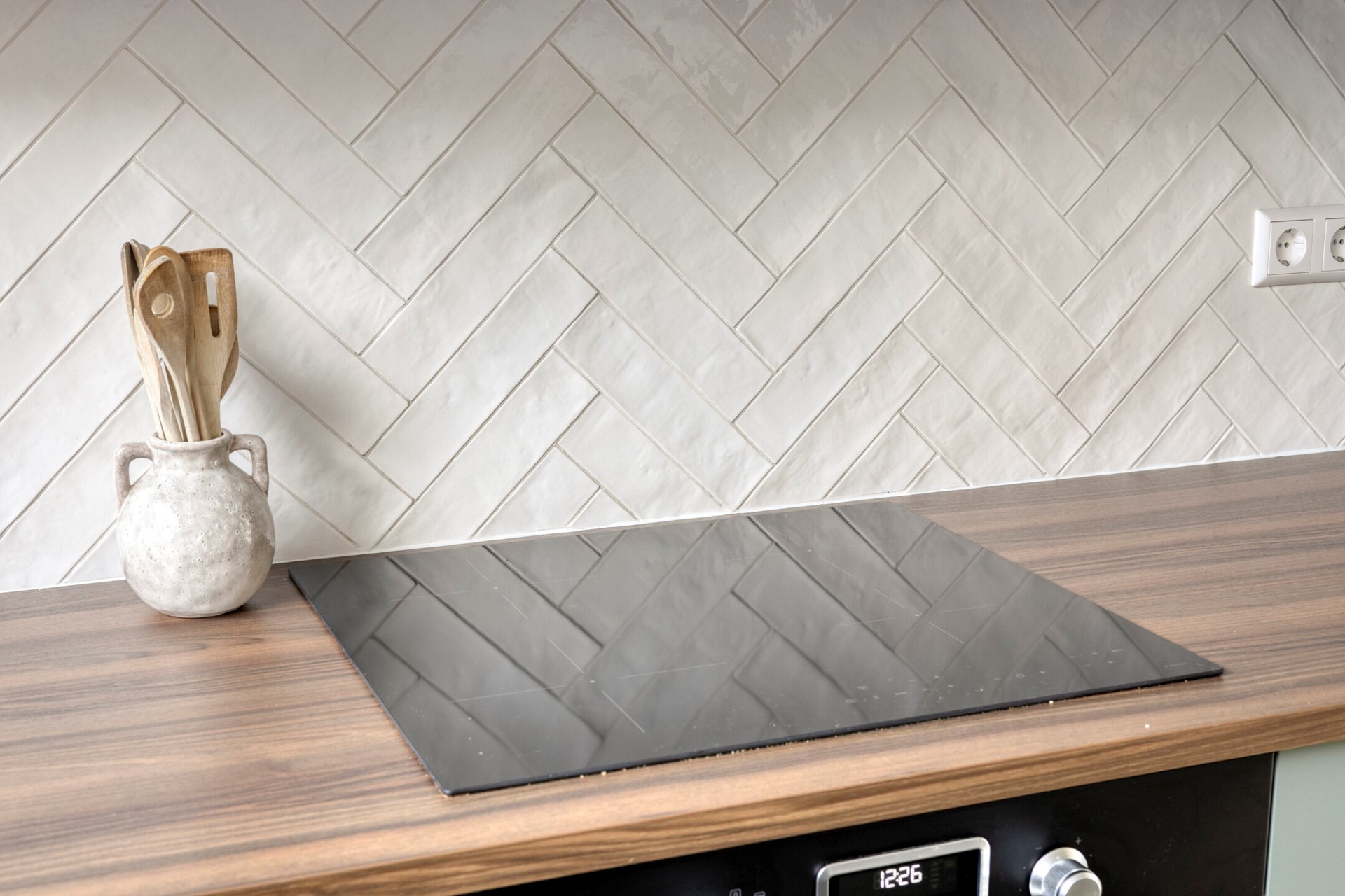 De witte metrotegels geven het geheel een frisse en verzorgde uitstraling.