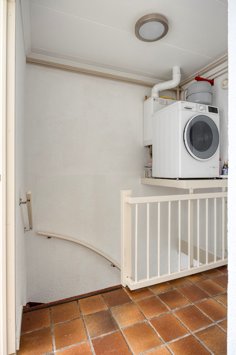 De cv-ketel opstelling en de wasmachine aansluiting zijn boven het trapgat gesitueerd.