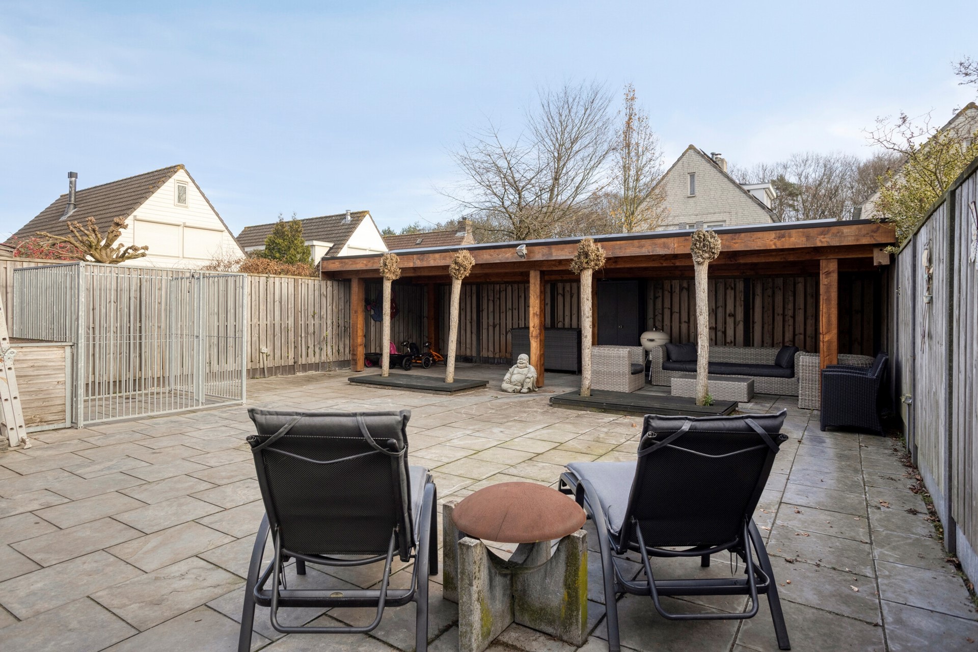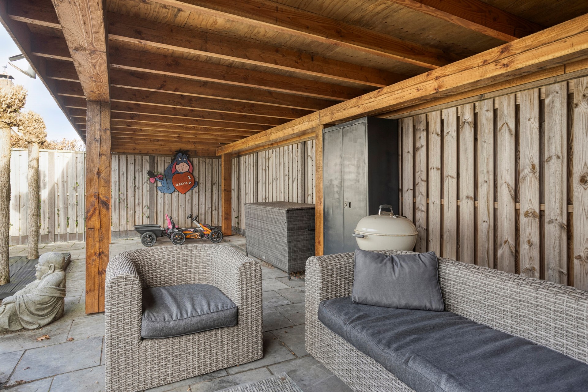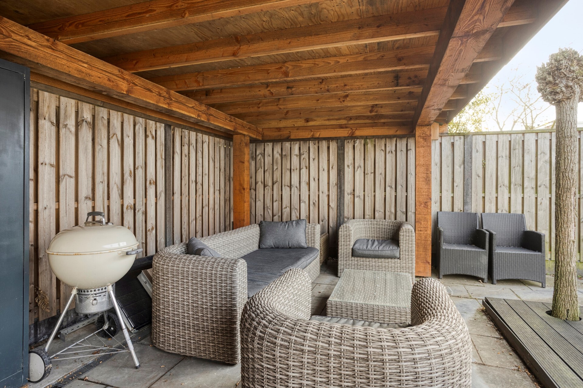 Wat meteen opvalt aan de op het zuiden gelegen tuin is de royale breedte. De tuin is momenteel volledig bestraat, wat zorgt voor weinig onderhoud en veel gebruiksruimte. Achterin vindt u een fraaie houten overkapping. Dit is een perfecte plek voor een loungehoek of gezellige zitplaats.