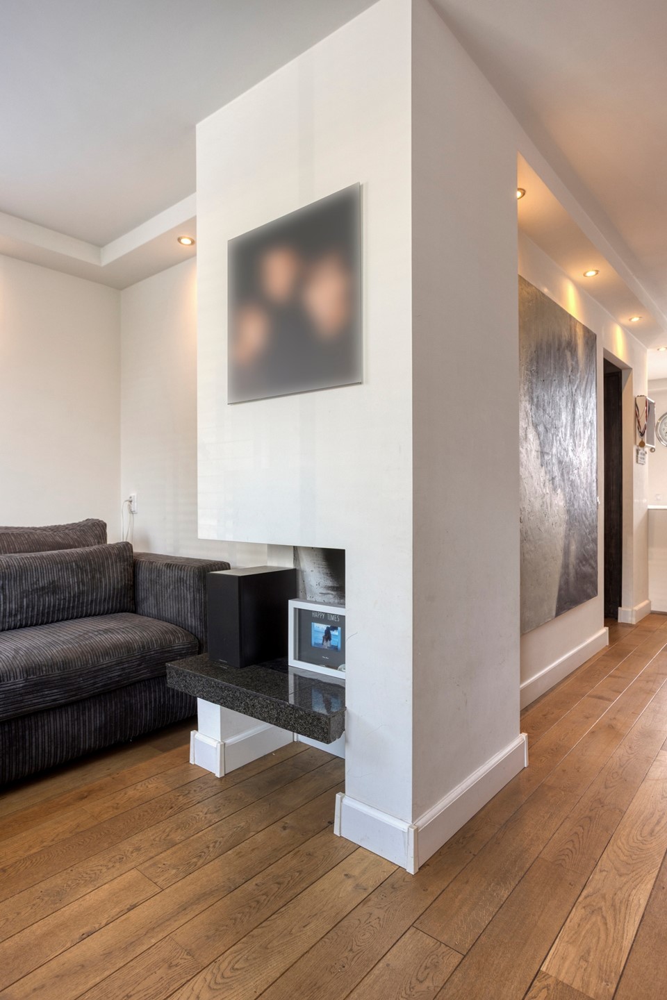 Vanuit de hal loopt u het royale woongedeelte binnen. De woonkamer is ruim van opzet en biedt daardoor volop indelingsmogelijkheden. Aan de voorzijde vindt u het gezellige zitgedeelte met haard, waar u uitkijkt op de rustige straat. Aan de achterzijde ligt het eetgedeelte met open keuken en openslaande tuindeuren die direct toegang geven tot de achtertuin.