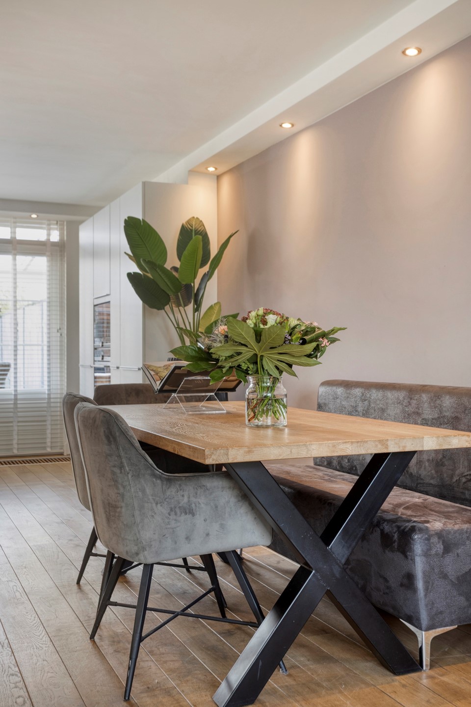 Op de gehele begane grond ligt een prachtige eikenhouten vloer die zorgt voor een tijdloze en elegante basis.