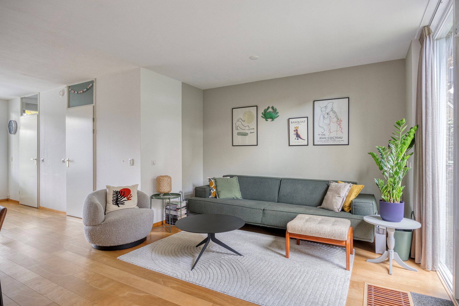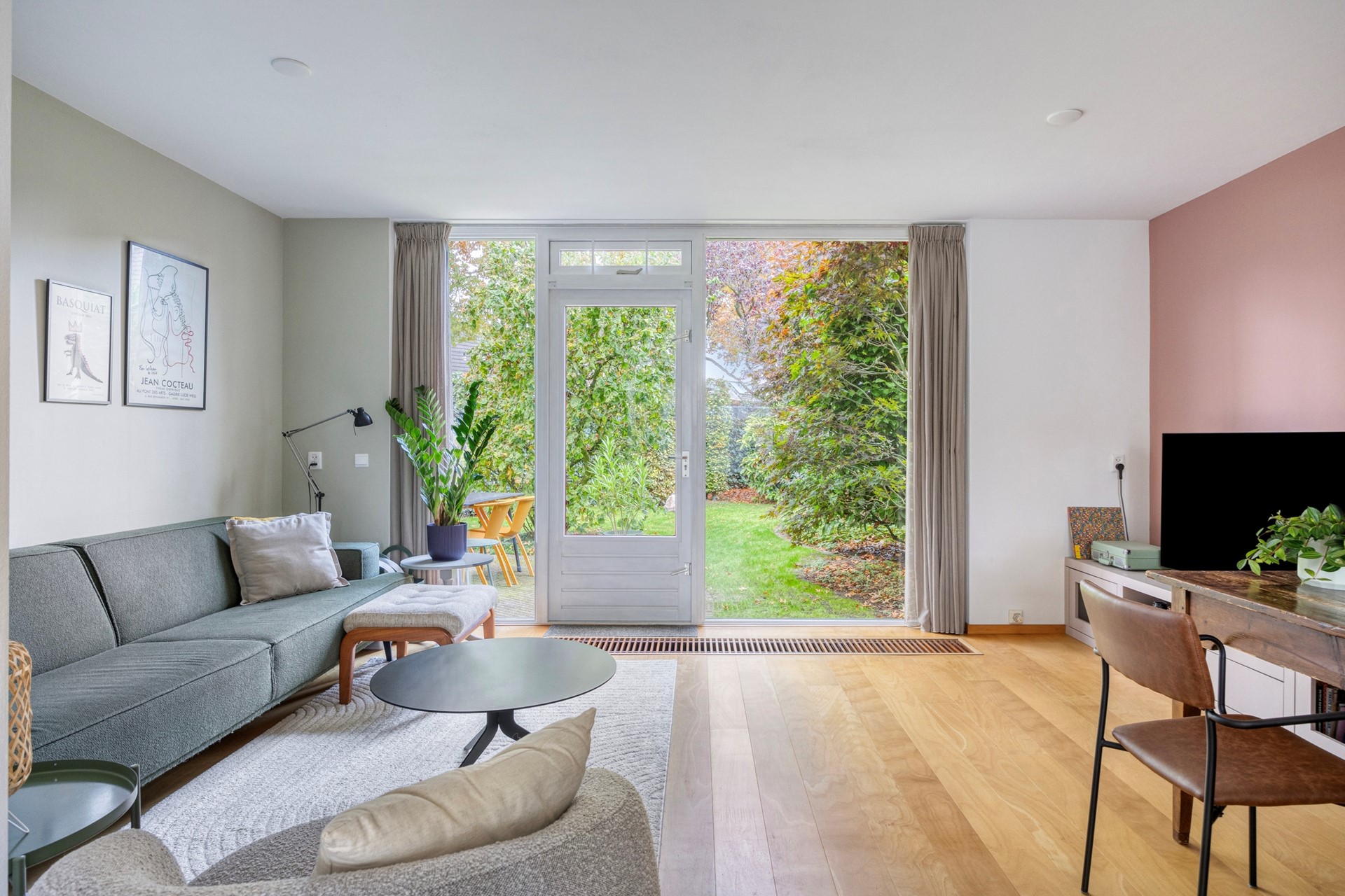Binnenkomst in de hal met meterkast, toilet, garderobe en toegang tot de lichte, tuingerichte woonkamer. Doordat de woonkamer aan de achterzijde ligt geniet je volop van je privacy. Dankzij de grote raampartijen geniet je hier van veel natuurlijk licht en is er een mooie verbinding met de achtertuin.