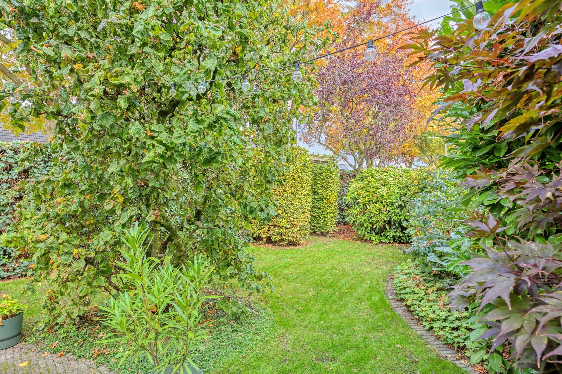 De achtertuin ligt op het westen, waardoor je tot laat in de avond van de zon kunt genieten.